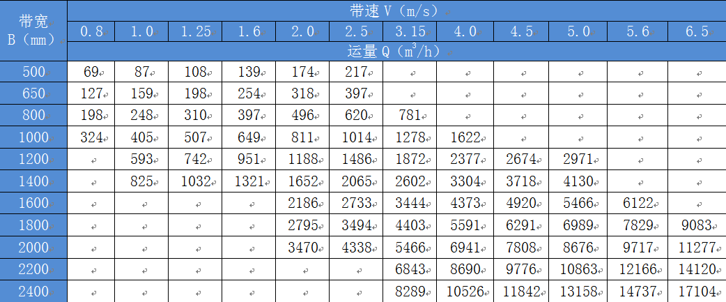 DT II(A)固定帶式輸送機選型表